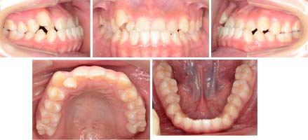 骨格的に厳しい症例です。しかし、上顎前歯の前方傾斜と下顎前歯の後方傾斜させる事で改善は可能であると判断しました。状態にはよっては上顎前歯の動揺が起きる事が予測できます。これを確認しながら治療を行いました。実際には起きていません。